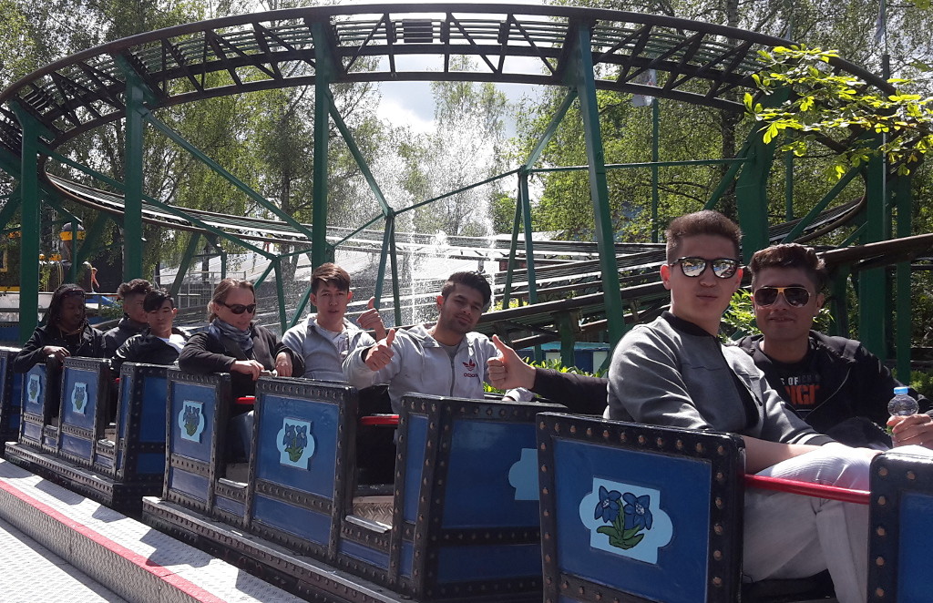 Das Wetter war zwar durchwachsen, davon ließen wir uns aber nicht abhalten. Bei dem ein oder anderen kleinen Regenschauer wurde eine Jonglier-Show und eine Feuershow im Park besucht. Die Fahrgeschäfte Freefall-Tower, Autoscooter und Wildwasserbahn standen ganz oben auf der Liste und wurden mehrmals gefahren. Ob schnell, rückwärts, über Kopf oder nass – wir hatten jede Menge Spaß an diesem Tag. Zum Abschluss machte die Gruppe noch bei Mc Donalds einen Stopp auf der Heimfahrt.