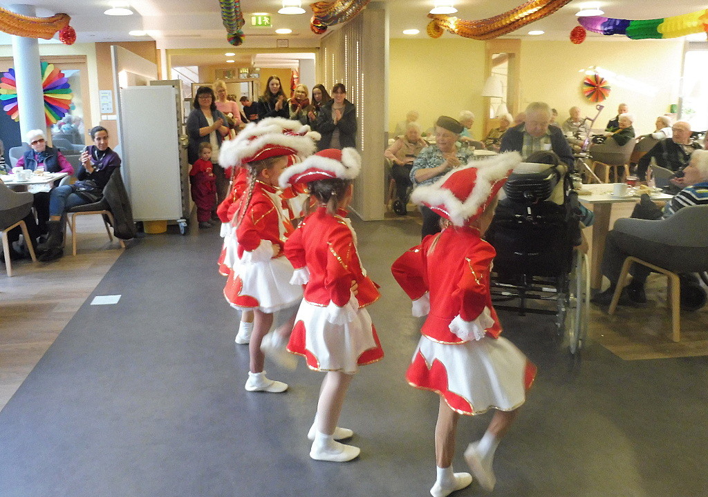 Weiter gings am Rosenmontag. Mit einem lustigen Rosenmontagskaffee sorgte unser ehrenamtlicher Mitarbeiter Herr Friedrich Weigand im Speisesaal für gute Laune. Bei „Kaffee und Krapfen" erfreuten sich die Bewohner an der schwungvollen Musik. Alte und neue Schlager und auch Wunschmelodien klangen durchs Haus. Für Faschingsstimmung, die an so manche Prunksitzung erinnerte, sorgte auch die Kindertanzgarde „Bambinis" aus Wombach, die auch in der Tagespflege auftrat. Begeistert klatschten die Senioren zu den schönen Gardetänzen. Die Tanzkinder zogen in altbekannter Weise mit dem „Mainzer-Narhalla-Marsch" in den Saal ein.