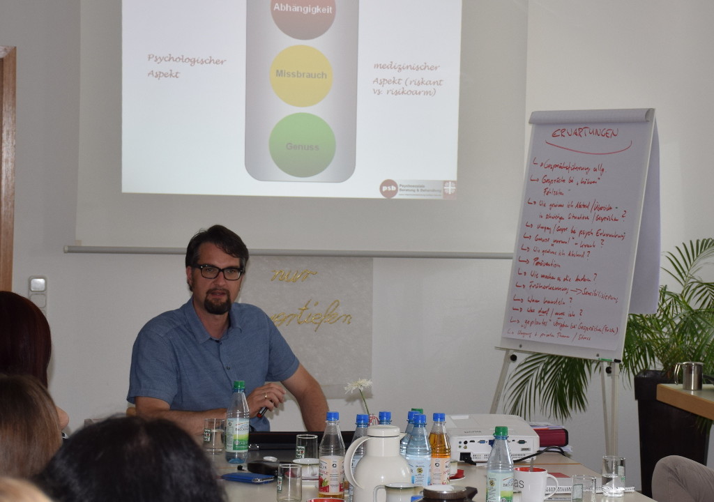 profitieren und führten mit Marcus Stein (Mitarbeiter der PsB) ein Seminar zum Thema „Sucht und psychische Krisen am Arbeitsplatz"