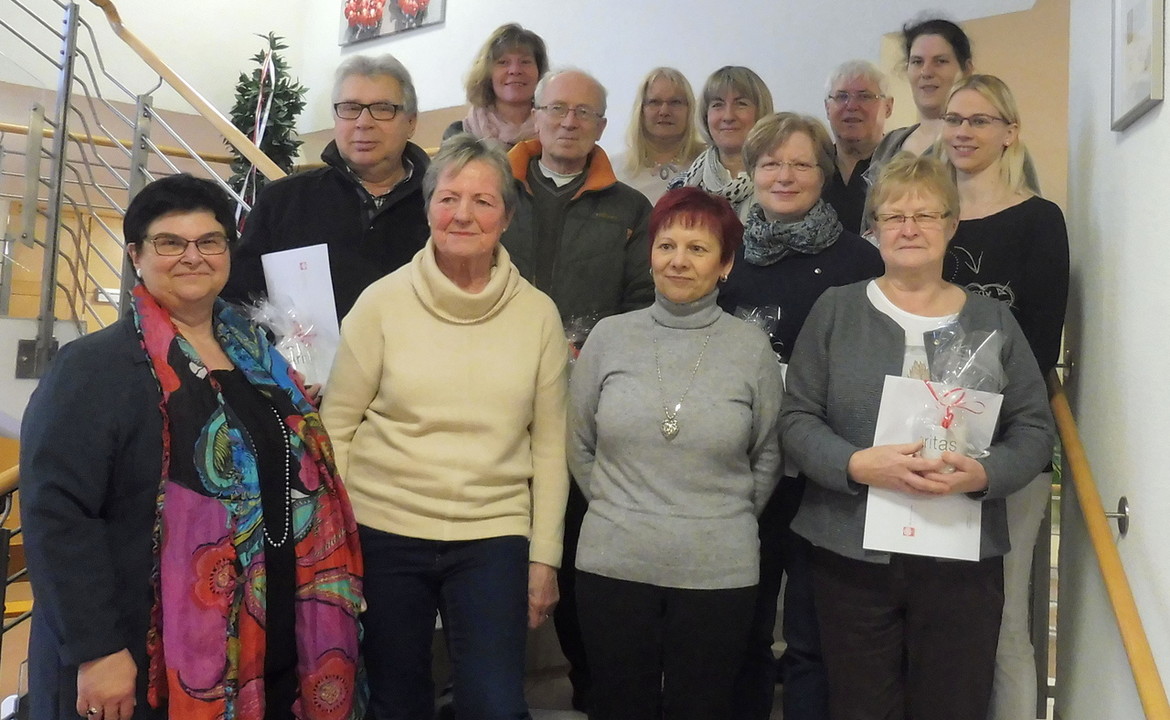Für 10 Jahre Ehrenamt bei der Caritas wurden Paul Bickert, Reinhild Becker, Brigitte Herrmann, Brigitte Schwarzer, Werner Waigand und Friedrich Weigand geehrt.