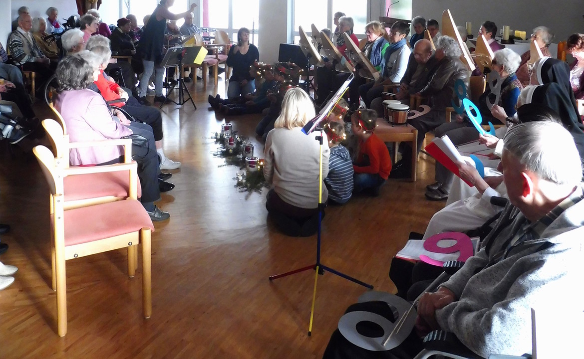 Die Veeharfengruppe Martinszupfer des Seniorenzentrums St. Martin veranstalteten am Freitag, 15.12. zusammen mit dem Seniorenchor St. Martin und dem Kindergarten Seeweg aus Lohr eine Weihnachtsmatinee in der Hauskapelle. Ein buntes, abwechslungsreiches und weihnachtliches Programm wurde den Bewohnerinnen und Bewohnern geboten.