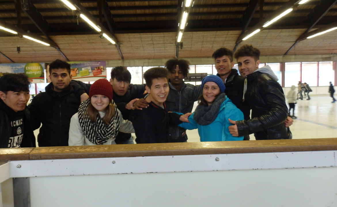 Junge Flüchtlinge trauten sich aufs Eis