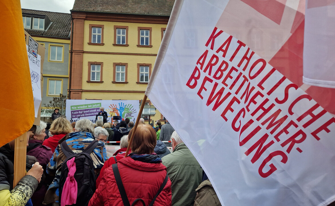 Am Samstag, 17.02. haben wir uns der Demo MSP ist BUNT in Karlstadt angeschlossen. Mit ca. 2.000 Teilnehmer*innen standen wir gemeinsam auf dem Marktplatz für unsere Demokratie ein.