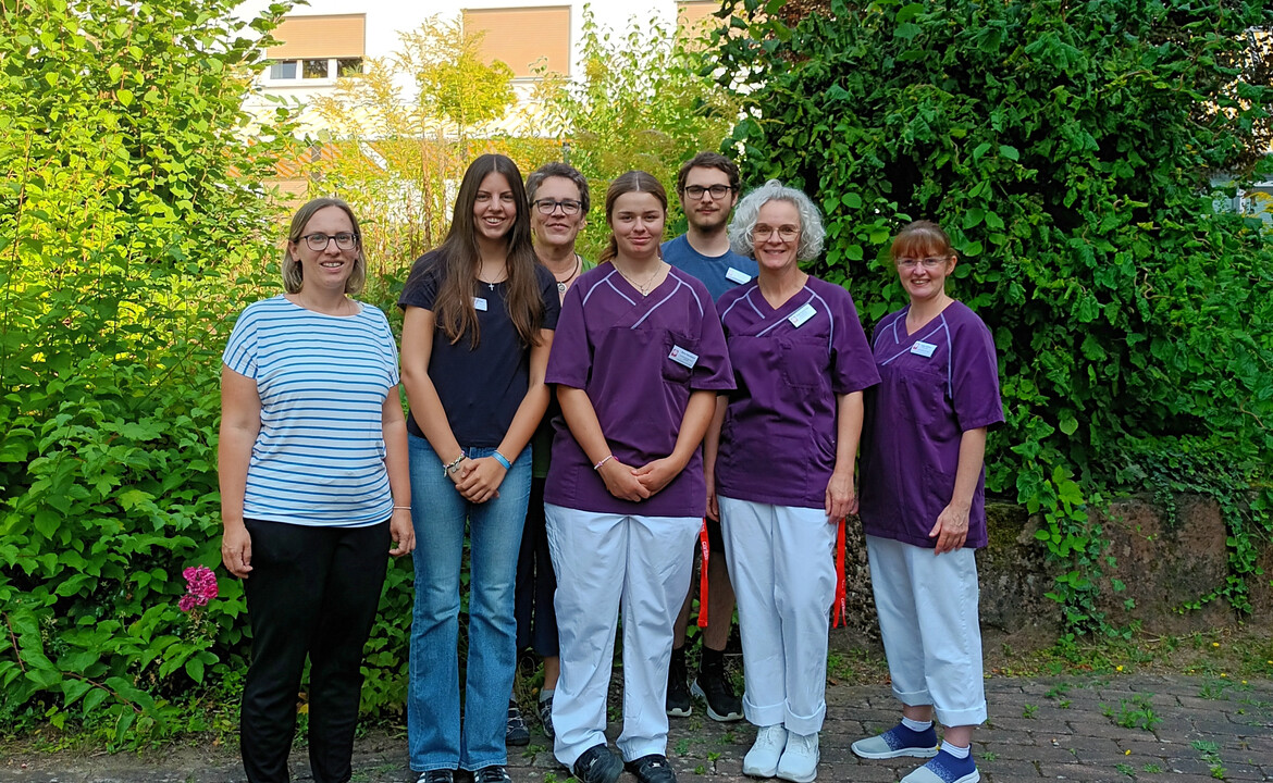 v.l.: Praxiskoordination Jennifer, Auszubildende Büromanagement Lena, Ausbilderin Personalabteilung Heike, Bundesfreiwilligendienstleistende Sina, Auszubildender Büromanagement David, Auszubildende Pflege Tanja, Praxisanleiterin Katja