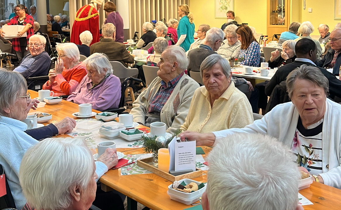Mit großem Engagement zog der Nikolaus durch unser Haus, um allen eine Freude zu bereiten. Er machte Station in der Tagespflege, im Speisesaal, in der Cafeteria und in den Wohnbereichen. Überall wurde er mit altbekannten Nikolaus- und Adventsliedern sowie Gedichten herzlich begrüßt.