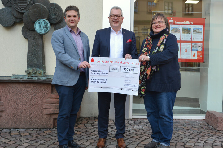 Mit einer Spende in Höhe von 3.000 Euro sorgte Gebietsdirektor Peter Schmitt von der Sparkasse Mainfranken zum Jahresstart für viel Freude beim Caritasverband.