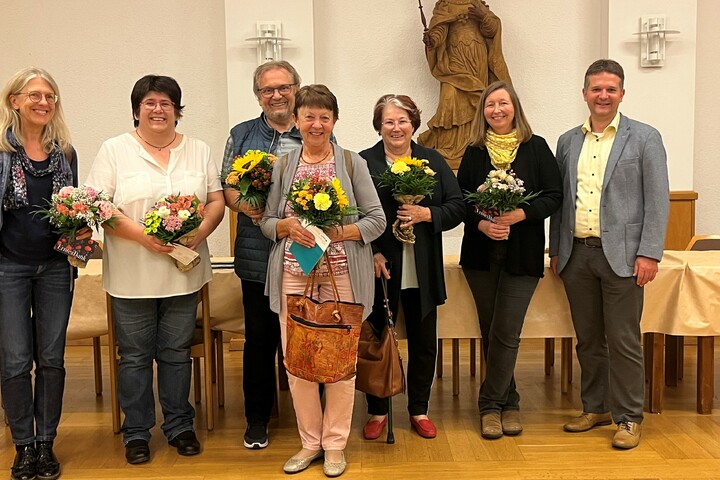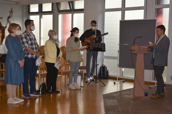 Mit dem Lied „Lautdato si“ wurde auch musikalisch gedankt bevor Magda Hartmann, die Vorsitzende des Kreiscaritasverbandes, in ihrer Ansprache die Gelegenheit nutzte Danke zu sagen für die aufopferungsvolle Arbeit der Mitarbeiterschaft. Alle hätten in schwierigen Zeiten gegenseitig Dienste übernommen und seien bis an ihre Grenzen gestoßen. Sie wies zugleich darauf hin, dass die Vorstandschaft immer ein offenes Ohr für alle Anliegen habe und ermutigte die Mitarbeitenden bei Bedarf auf ihre jeweiligen Vorgesetzten zuzugehen.