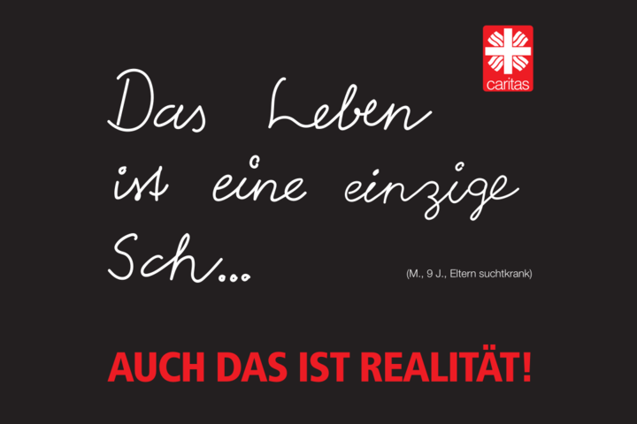 „Auch das ist Realität!“ heißt es deshalb auf dem Caritassammlungsplakat. Ja. Unter uns leben auch Kinder, die unter extremen Belastungen leiden. Die Eltern sind zerstritten, ein Elternteil ist suchtkrank, ein Familienmitglied ist schwer psychisch erkrankt. Ein Unfall hat eine Schneise des Leids in die Familie, in die einstige Unbeschwertheit geschlagen. M. ist so ein Kind. Er sagt: „Das Leben ist eine einzige Sch...“