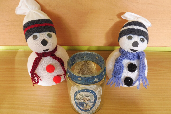 Es wurde geschnitten, geklebt, genäht, gehäkelt und gestrickt. So sind kleine Schneemänner und Windlichter mit weihnachtlichen Motiven entstanden, die auf dem Weihnachtsmarkt im Klosterhof angeboten werden.