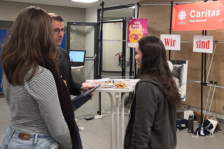 Neben über 30 weiteren Ausstellern, die ihren Sitz in der Nähe von Lohr haben, konnten viele Interessenten sich diverseste Informationen holen. Viele informierten sich bei Caritas über die soziale Arbeit wie bspw. Ein Studium, einer Ausbildung im Kindergartenbereich sowie einer Ausbildung zur Pflegefachkraft. Aber auch allgemeine Informationen über Caritas wurden ausgetauscht. Vertreten wurde die Caritas durch Antonia Siegler, Verbandsmanagement im Caritasverband Main-Spessart und Sebastian Puglisi, Geschäftsführer der Sozialstation St.Rochus in Lohr.