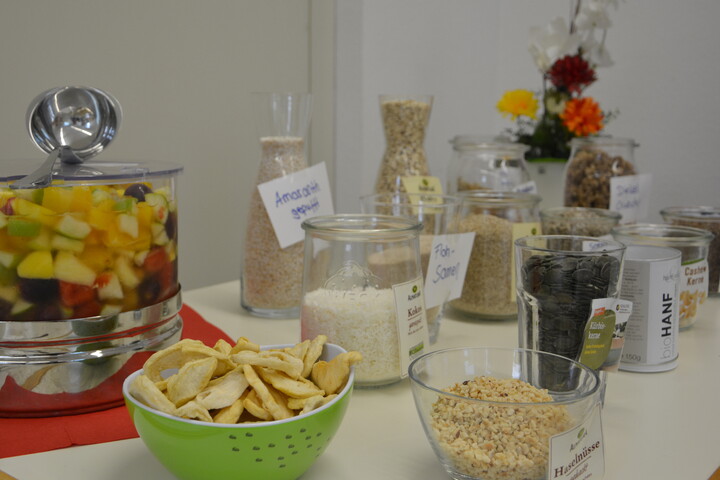 Während des ganzen Tages konnten sich die Mitarbeiter an der "Müslibar- Mix your Müsli" ein gesundes Frühstück selbst mischen. Infos zum Thema Öle und deren Beitrag zu einer gesunden Ernährung sowie ein Geschmackstest wurden gerne angenommen. Das BGM-Team des Verbandes bedankt sich ausdrücklich bei der AOK-Würzburg für den gelungenen Tag.