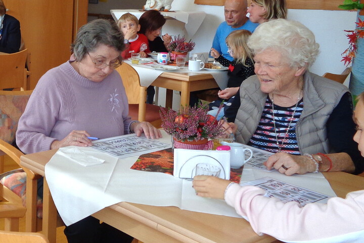 So konnte man selbst erleben, was sich alles hinter dem Begriff Gedächtnistraining versteckt. Auch die Gestaltung von schönen Karten wurde angeboten. Die Verbindung von Musik und Bewegung konnten die Gäste beim Sitztanz erfahren. Das Singen von Volksliedern, aber auch die Schlager der 50er- und 60er Jahre sind in der Tagespflege beliebt und sorgten für gute Stimmung. Beim allseits beliebten Bingo-Spiel konnte sogar noch etwas gewonnen werden, was vor allem die anwesenden Kinder freute.