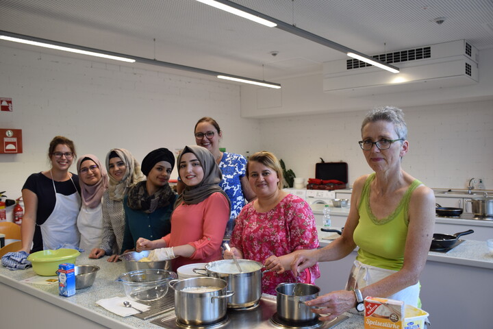 Am 27.6.2019 fanden sich bei Außentemperaturen um die 35°C 13 Teilnehmerinnen zum interkulturellen Kochkurs in der Schulküche des Nägelsee Schulzentrums ein, zu dem der Caritasverband Main-Spessart gemeinsam mit dem Malteser Hilfsdienst e.V. geladen hatte. Eingeladen waren alle, die Lust hatten, neue Gerichte und Kulturen kennenzulernen und Spaß am gemeinsamen Kochen haben.
