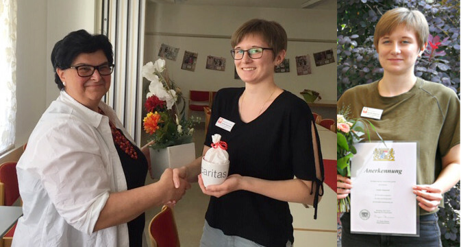Der Caritasverband Main-Spessart legt großen Wert auf eine qualitativ hochwertige Ausbildung. Deshalb an dieser Stelle nochmals ein großes Lob an unsere zwei Ausbilderinnen, Frau Heilmann und Frau Bickert für ihre getane Arbeit, ihre Mühe, das offene Ohr und ihre Geduld. Zudem freuen wir uns, beide junge Kolleginnen weiterhin beschäftigen zu können. Sie sind eine große Bereicherung für den Verband und unser Aushängeschild für eine erfolgreich absolvierte Ausbildung bei der Caritas!