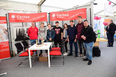 Als Praktiker berichtete Herr Puglisi beispielsweise über den Berufsalltag, die Unterschiede zwischen ambulanter und stationärer Pflege, sowie über Voraussetzungen, Ausbildungsdauer und Verdienst einer Ausbildung zum Altenpfleger. Ziel der Veranstaltung war es, die Jugendlichen über eine Ausbildung bei der Caritas in den Bereichen der Pflege zu informieren und sie dazu zu ermuntern, Praktika bei der Caritas als gute Option zu sehen, um die Praxis im Alltag kennenzulernen. Weitere Angebote gab es durch das Klinikum Main-Spessart, die Sparkasse, Bosch Rexroth oder auch die Möglichkeiten der Ausbildung bei der Polizei und vielen weiteren Anbietern. Ein breites Spektrum war geboten, sodass die SchülerInnen eine große Auswahl hatten, sich am ganzen Vormittag über verschiedenste Berufe genauer zu informieren. Für die Zukunft bietet die Caritas-Sozialstation und der Caritasverband Vorträge dieser Art gerne häufiger an, um so Nachwuchs-Fachkräfte zu gewinnen für den immer wichtiger werdenden Bereich „Alter und Pflege.
