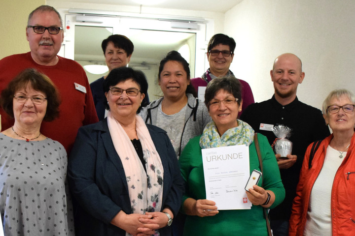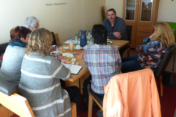 Die ehrenamtlichen Alltagspartner der Fachstelle für pflegende Angehörige Karlstadt (Trägerschaft: Caritasverband Main-Spessart) treffen sich einmal monatlich, um sich über ihre Einsätze und über Neuigkeiten auszutauschen. Sie besuchen pflegebedürftige Menschen im Raum Karlstadt und übernehmen für einige Stunden pro Woche deren Betreuung. Während der Besuche – bei denen sie sich individuell auf die Bedürfnisse und die Geschwindigkeit der älteren Menschen einstellen können – versuchen sie den Betroffenen ein Stück Lebensqualität und gesellschaftliche Teilhabe zu schenken.