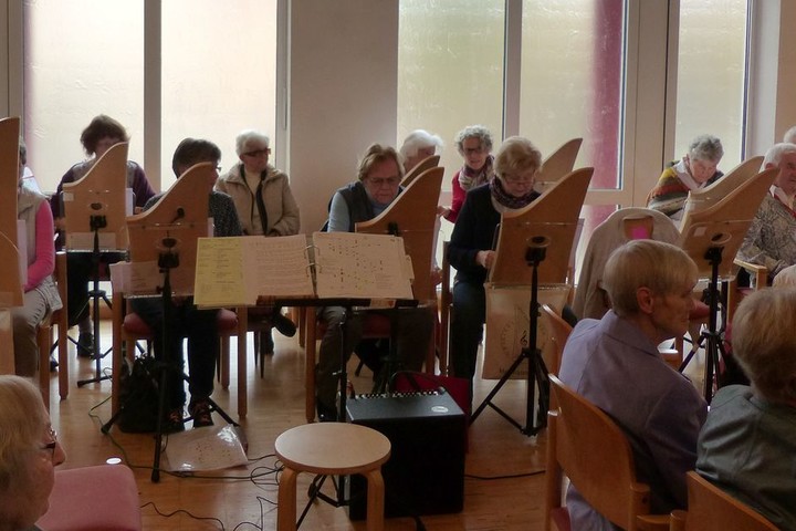 Gabriele Kimmel dankte Petra Helfrich, der Leiterin der Gruppe, die seit 2006 im Seniorenzentrum tätig ist. Zunächst begann alles mit dem Klangkreis und es wurden Überlegungen angestellt, welche weiteren musikalischen Angebote man machen könnte.