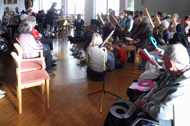 Die Veeharfengruppe Martinszupfer des Seniorenzentrums St. Martin veranstalteten am Freitag, 15.12. zusammen mit dem Seniorenchor St. Martin und dem Kindergarten Seeweg aus Lohr eine Weihnachtsmatinee in der Hauskapelle. Ein buntes, abwechslungsreiches und weihnachtliches Programm wurde den Bewohnerinnen und Bewohnern geboten.