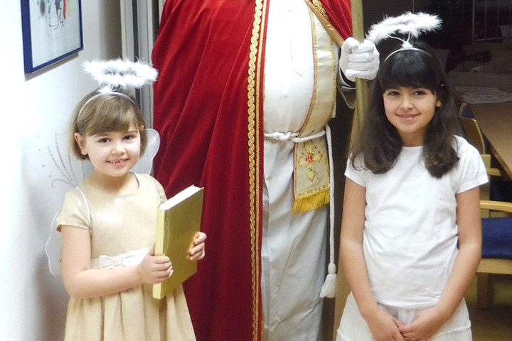 Besuch im Caritas-Seniorenzentrum St. Martin – Wie jedes Jahr erfreute der heilige Nikolaus auch heuer wieder unsere Seniorinnen und Senioren mit kleinen Geschenken, Gedichten und Texten. Jedoch kam er nicht mit seinem Knecht Ruprecht sondern in Begleitung zweier kleiner Engel. Die beiden Mädchen sind die Kinder unserer Sozialpädagogin Silvia Schäfer und verteilten die kleinen Aufmerksamkeiten an die Bewohner. Als Vorhut des Nikolauses stimmten der ehrenamtliche Friedrich Weigand und die Mitarbeiterinnen des Sozialdienstes Christina Fröba und Silvia Schäfer die Bewohner musikalisch auf den Besuch des Nikolauses ein. An jeden Bewohner richtete der Nikolaus persönliche und gute Wünsche.