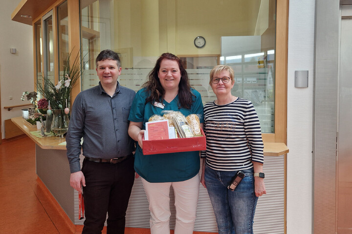 Wir gratulieren Frau Monika Wendel recht herzlich zum 20-jährigen Dienstjubiläum. Sie unterstützt uns in unserem Caritas-Seniorenzentrum St. Martin im Bereich der Hausreinigung. Mit einem Nudelpräsentkorb bedankten sich Geschäftsführer Florian Schüßler, Einrichtungsleitung Emelie Schneider und Sonja Salomon Leitungs Hauswirtschaft für die langjährige Zusammenarbeit. Wir freuen uns sehr, dass Frau Wendel schon so lage Teil unserer Dienstgemeinschaft sind und wünschen Ihr weiterhin viel Freude bei ihren Aufgaben.