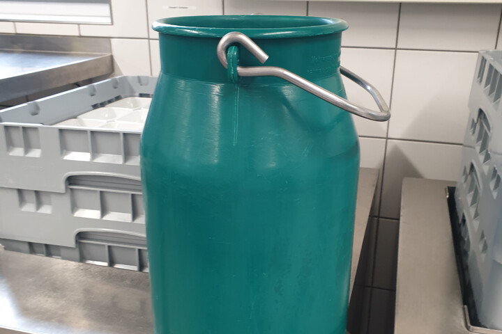 Wir setzen uns seit Langem für Nachhaltigkeit ein und haben bereits viel erreicht. Zum Beispiel kaufen wir Obst und Gemüse regional ein. Nun haben wir eine besondere Errungenschaft zu verzeichnen: Das SOS Kinderdorf aus Hohenroth beliefert uns mit Frischmilch in Mehrwegbehältern. Die Kannen werden zurückgenommen, gereinigt und wiederbefüllt, was unseren Plastikverbrauch reduziert. In einer Woche verbrauchen wir etwa 120 Liter Milch, was 12 großen Eimern entspricht. Schrittweise wollen wir auch andere Molkereiprodukte auf Mehrweg umstellen, immer unter Beachtung der Hygienevorschriften. Wir freuen uns sehr über diesen Erfolg.