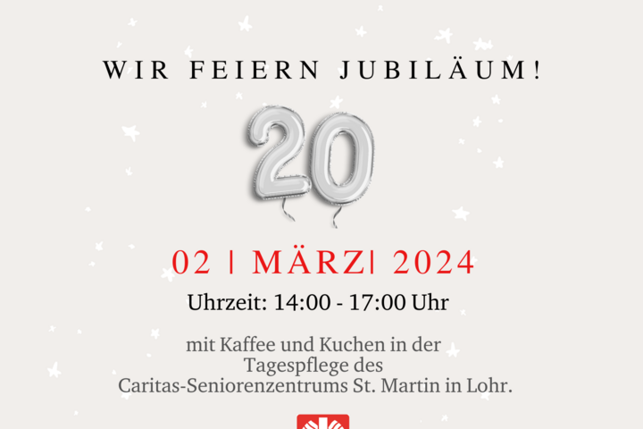 Hierzu laden wir Sie herzlich zu unserer Feier am 2. März 2024 von 14.00 bis 17.00 Uhr bei Kaffee und Kuchen in der Tagespflege des Caritas Seniorenzentrums St. Martin ein.