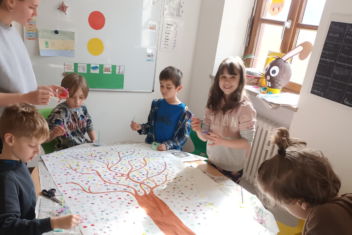 Außerdem wure zum Thema Frühling fleißig gebastelt und dann dekoriert.