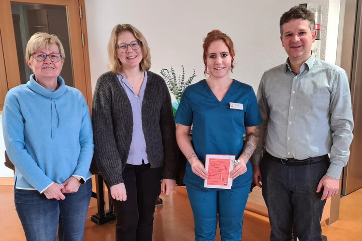 Wir gratulieren Frau Frauke Brooks recht herzlich zum 10-jährigen Dienstjubiläum. Sie unterstützt uns in unserem Caritas-Seniorenzentrum St. Martin als Pflegehelferin im Wohnbereich Rosengarten. Mit einem Nudelpräsentkorb bedankten sich Geschäftsführer Florian Schüßler, Einrichtungsleiterin Emelie Schneider und Pflegedienstleiterin Monika Kohl für die langjährige Zusammenarbeit. Wir freuen uns sehr, dass Frau Brooks schon so lange Teil unserer Dienstgemeinschaft sind und wünschen Ihr weiterhin viel Freude bei ihren Aufgaben.