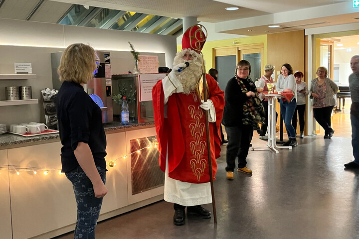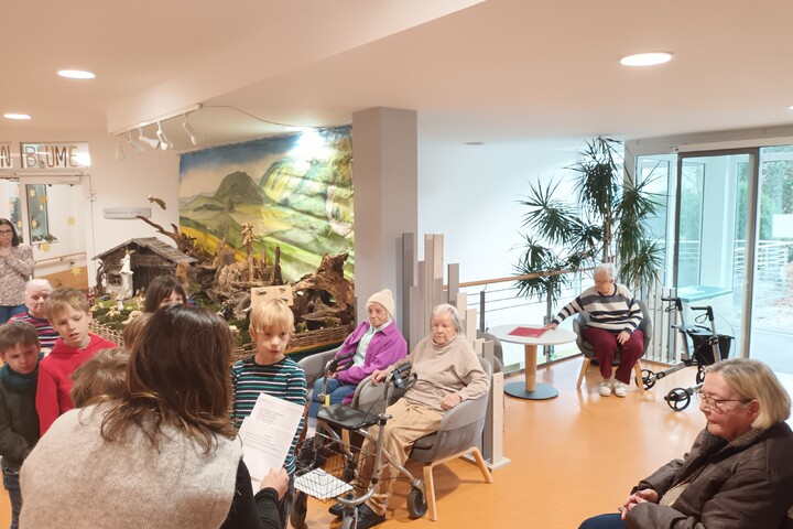 Die Kinder der Heilpädagogischen Tagesstätte haben eine festliche Atmosphäre geschaffen, indem sie das Lied "Kling Glöckchen" gesungen und eigene, selbstgedichtete Gedichte vorgetragen haben. Zusätzlich zu ihren kreativen Beiträgen haben die Kinder liebevoll selbstgemachte Geschenke wie Glocken, Sterne und Windlichter mitgebracht. Der Besuch der Kinder trug dazu bei, eine besondere und herzliche Stimmung zu schaffen.