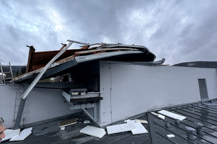 Durch die kurzfristige Organisation zahlreicher lokaler Handwerksunternehmen wie Spenglerei Schecker, Zimmerei Wirth und der Kran des Malerbetriebs Hübner konnte ein Notdach gebaut und befestigt werden. Hierdurch wurde der darunter liegende Technikbereich des Seniorenzentrums vor einem weiteren Wasserschaden bewahrt.