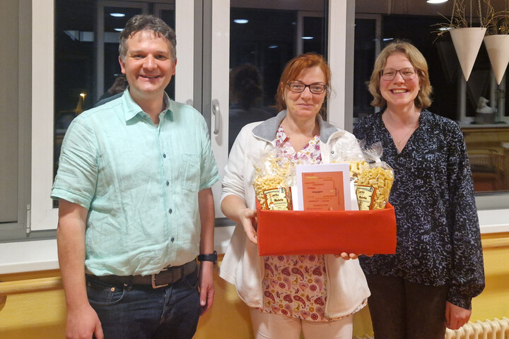 Es dankten ihr Geschäftsführer Florian Schüßler und Küchenleiterin Frau Gebhard mit einem süßen Gruß für ihren täglichen Einsatz.