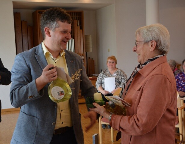 Das Segenslied am Ende berührte die beiden Jubilare sichtlich, die sich bei allen Mitarbeiterinnen und Mitarbeitern für ihr Engagement herzlich bedankten. Geschäftsführer Florian Schüssler überreichte kleine Präsente und dankte Frau Hartmann und Herrn Goldkuhle für ihren jahrelangen Einsatz und die gute Zusammenarbeit.