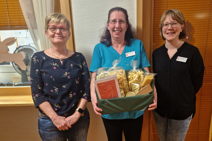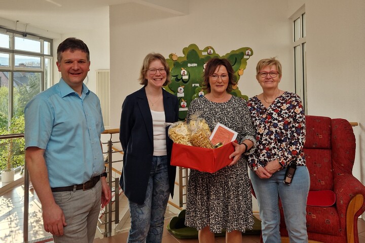 Wir gratulieren Frau Manuela Kunkel recht herzlich zum 15-jährigen Dienstjubiläum. Frau Kunkel ist als Pflegehelferin in unserem Caritas-Seniorenzentrum St. Martin im Wohnbereich Sonnenblume tätig. Mit einem Nudelpräsentkorb bedankten sich Geschäftsführer Florian Schüßler, Einrichtungsleiterin Emelie Schneider und Pflegedienstleiterin Monika Kohl für die langjährige Zusammenarbeit. Wir freuen uns sehr, dass Frau Kunkel schon so lange Teil unserer Dienstgemeinschaft ist und wünschen Ihr weiterhin viel Freude bei ihren Aufgaben.
