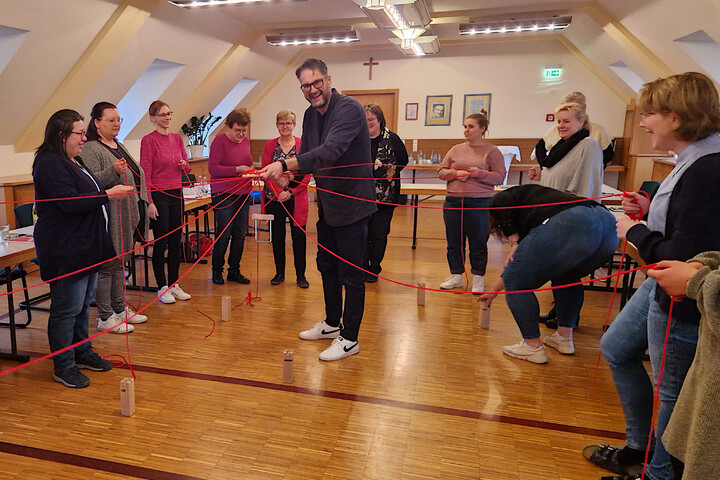 Leitende Mitarbeiterinnen und Mitarbeiter aus den Bereichen Zentrale Dienste, Jugendhilfe, Soziale Dienste und der Altenhilfe sowie die Stabstellen Gemeindecaritas, Qualitätsmanagement und Mitarbeitervertretung nahmen gemeinsam an den zwei Tagen teil um sich mit der Frage