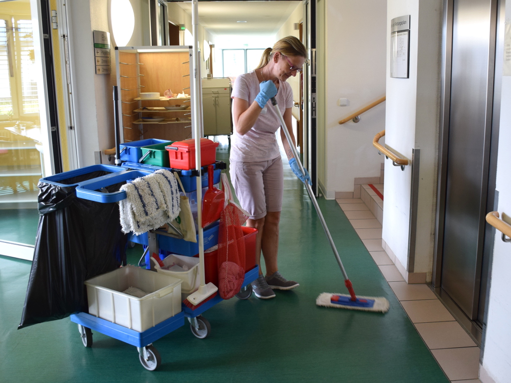 Der Reinigungsservice arbeitet nach fachlichen und einrichtungsspezifischen Standards und ist mit internen Mitarbeiterinnen besetzt, die einen guten Kontakt